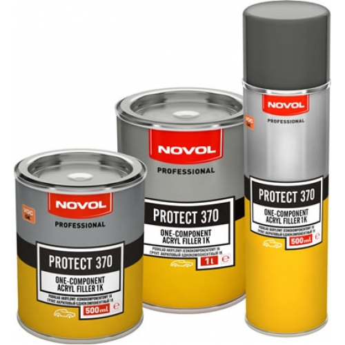 Это однокомпонентный наполняющий акриловый грунт, наносимый методом распыления при помощи пистолета, грунт производится также в аэрозольной упаковке. PROTECT 370 обладает слабой адгезией к металлическому основанию и не имеет антикоррозийных свойств, поэтому главное его предназначение - выравнивание шпаклёванных и старых лаковых поверхностей. Преимуществом PROTECT 370 является короткое время сушки (в особенности это характерно для грунта в аэрозоле), благодаря чему ремонт можно ускорить и осуществить в более короткий срок.