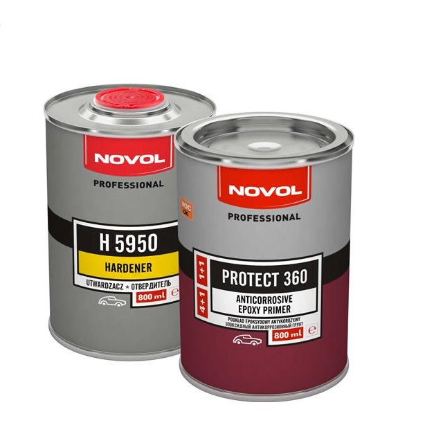 Novol Protect 310 4+1 - акриловый грунт 4+1 - это двухкомпонентный продукт. Первый компонент - дисперсия пигментов и наполнителя в акрилововой смоле. Второй компонент - отвердитель H 5520 - является раствором изоциановой смолы в разбавителе.